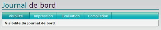 L'instructeur a la possibilité de donner des directives écrites quant à ses attentes. Il ou elle peut également décider du moment où le journal doit être complété. De leur côté, les participants rédigent un texte dans une nouvelle page de leur journal et peuvent consulter les pages des périodes antérieures. Dans le haut de la page vous donnant accès aux journaux de bord, vous verrez apparaître quatre onglets : visibilité, impression, évaluation, compilation.